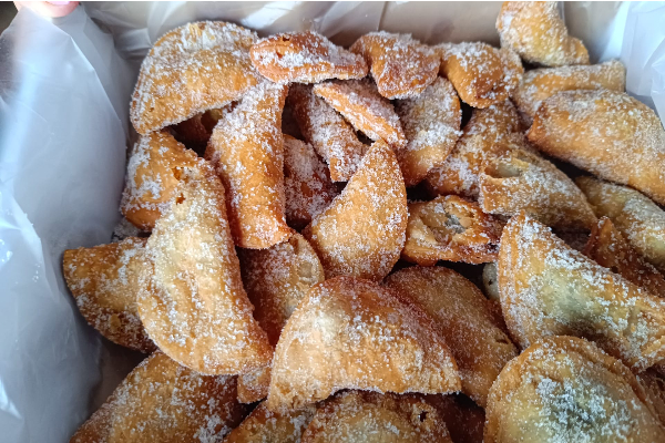 Harina de TRIGO, manteca de cerdo, cobertura ares (azúcar, grasa vegetal, suero de LECHE, en polvo, cacao desgrasado en polvo, grasa vegetal, emulgente E322, lecitina de girasol, E492)), vino blanco, agua, anís, sal, azúcar, impulsor (gasificante (E450i, E500ii), harina de TRIGO, regulador de la acidez E500i, antiaglomerante E516). Puede contener trazas de huevos y productos a base de huevos, soja, leche y derivados,altramuces y productos a base de altramuces y frutos secos.